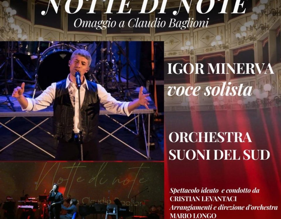 XXXIX STAGIONE CONCERTISTICA POTENZA – TEATRO F.STABILE 22 marzo 2026 ore 19.00 “NOTTE DI NOTE” Omaggio a Claudio Baglioni IGOR MINERVA – voce solista ORCHESTRA SUONI DEL […]